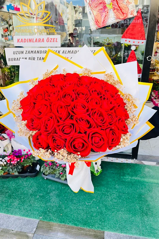 Taze ve özenle seçilmiş güllerle hazırlanan 41 Güllü Canlı Buket, dolgun yapısı ve güçlü duruşuyla ilk bakışta dikkat çeker. Güllerin canlı renkleri ve doğal açılımı bukete hacim kazandırır, bütünlüklü ve şık bir görünüm oluşturur.