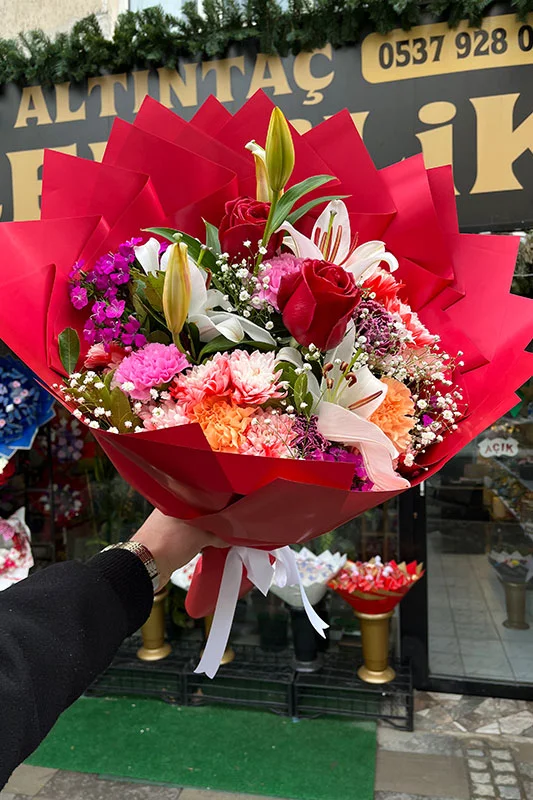 Mevsiminde temin edilen farklı çiçeklerle hazırlanan Karışık Canlı Mevsim Buketi, canlı renkleri ve doğal dokusuyla dengeli bir görünüm sunar. Birbirini tamamlayan çiçekler bukete hareket kazandırırken bütünlüklü ve estetik bir duruş oluşturur.