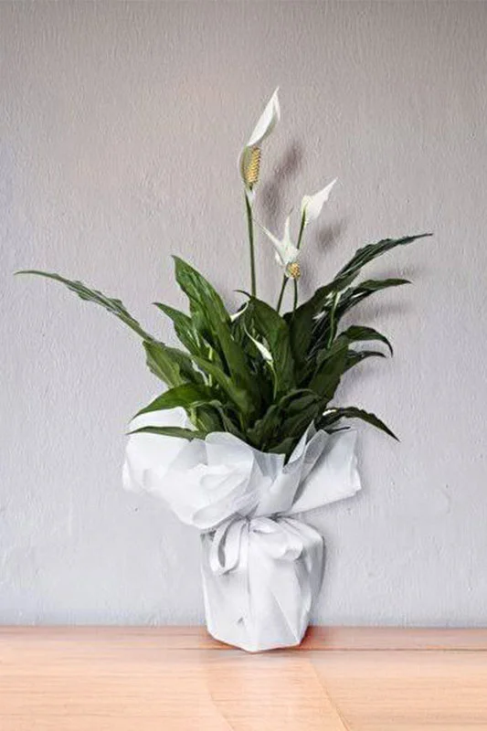 Parlak yeşil yaprakları ve beyaz çiçekleriyle Salon Bitkisi Spatifilyum, bulunduğu ortama sade ve ferah bir görünüm kazandırır. Düzgün formda gelişen yapısı sayesinde bakımlı ve estetik bir duruş sergiler.